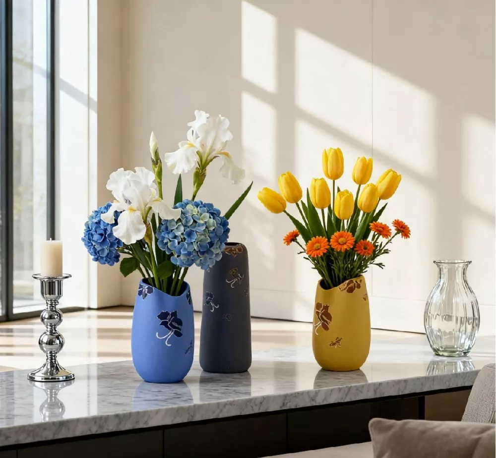 Naši izdelki obsegajo vaze, okrasne sklede in umetniške predmete v različnih velikostih, od miniaturnih do velikih. Visoke vaze so kot nalašč za rože z dolgimi peclji, nižje pa za šopke s krajšimi peclji. Okrasne sklede lahko uporabite za shranjevanje drobnarij ali kot pladnje za sadje. Abstraktni okraski vnesejo umetniško napetost v vsak prostor in se prilagodljivo prilagajajo dekorativnim in funkcionalnim potrebam različnih okolij, vključno z dnevnimi sobami, jedilnicami in spalnicami.