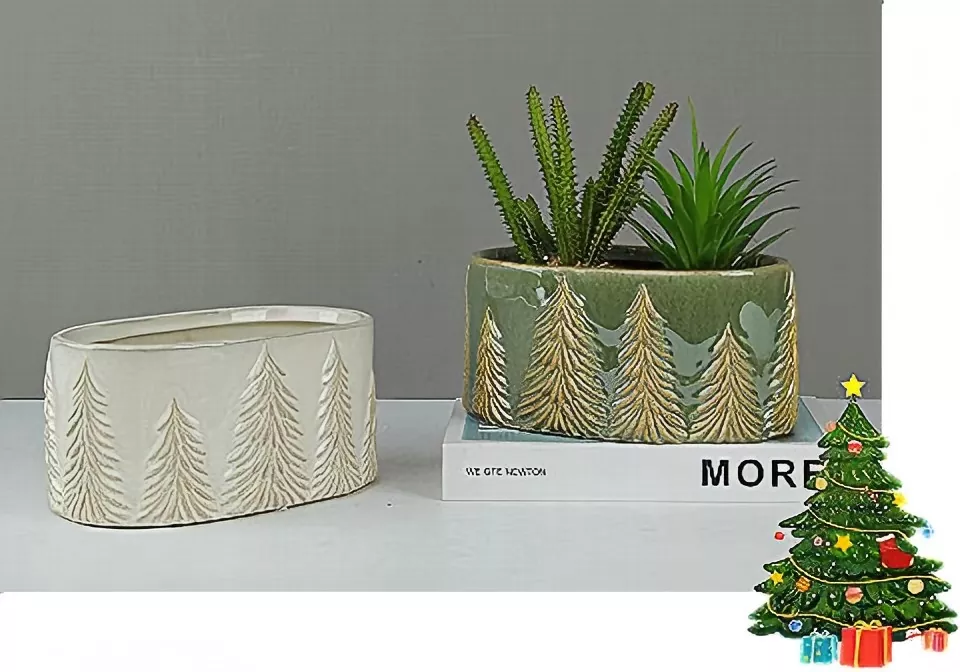 Serija BYF reliefnih božičnih vaz za bor vključuje nabor natančno ročno izdelanih keramičnih vaz in cvetličnih lončkov s klasičnim reliefnim vzorcem zimzelenega drevesa. Velikosti segajo od majhnih sadilnikov za sočnice do velikih izrazitih vaz, pri čemer je vsak kos zasnovan tako, da vašemu domačemu dekorju doda pridih naravnega, prazničnega šarma. Možnosti bogate zelene in čiste bele barve, pogosto združene s poudarki rdečega jagodičevja in plastjo "snežne" dekoracije, naredijo to serijo popolno osrednjo točko za ustvarjanje toplega in vabljivega počitniškega vzdušja.