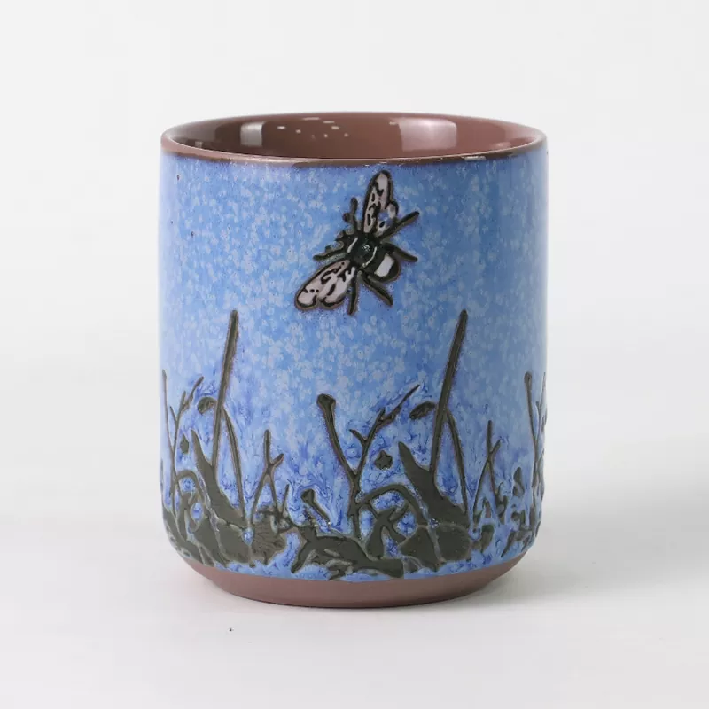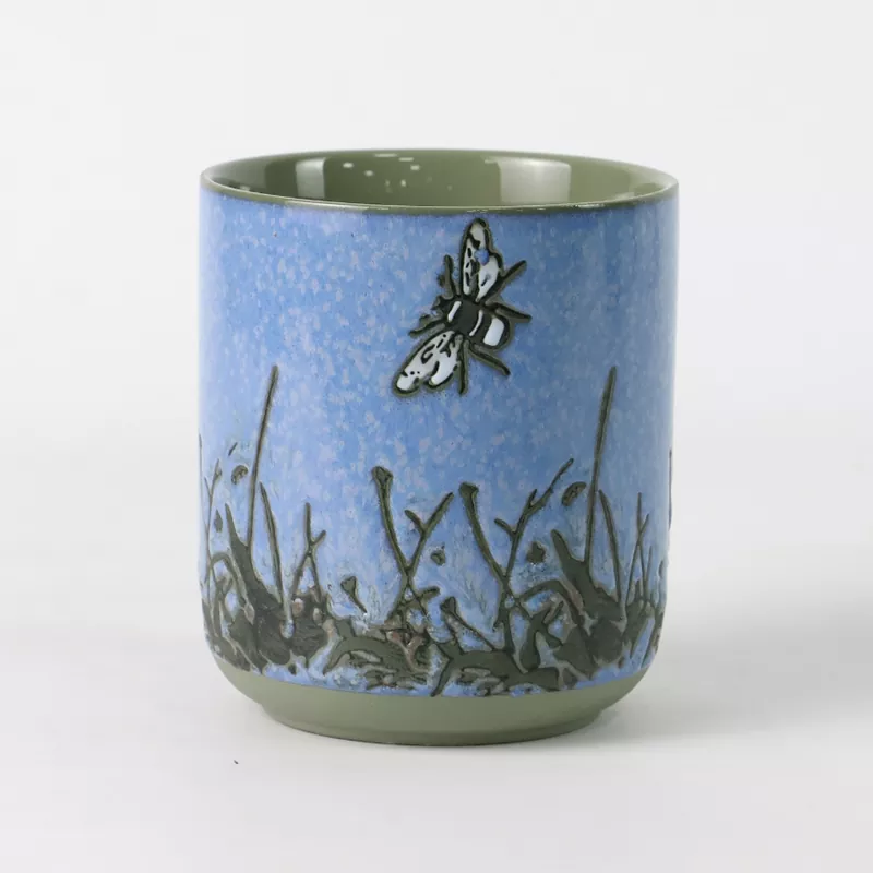 Serija keramičnih svečnikov z vzorcem žuželk črpa navdih iz naravnih podob "simbioze Cordyceps", ki zajema bistvo klasične vzhodnjaške estetike in mistično lepoto zvezdnega neba. Združuje visokotemperaturno žgano glazuro z ročno poslikano podglazurno dekoracijo, ki je podvržena na desetine prilagoditev in izboljšav, da na koncu ustvari tri prepoznavne barve: zvezdnato modro, mistično zeleno in globoko indigo. Zunanja stena skodelice spominja na prostrano zvezdnato nebo, posuto s finimi zlatimi lisami, kot bi sijaj Mlečne ceste držali na dlani; notranja stena uporablja čisto glazuro, prozorno kot ogledalo, ki ustvarja močan vizualni kontrast s teksturo zvezdnega neba na zunanji strani, ki prikazuje domiselnost v prepletanju svetlobe in sence. Ročno poslikani vzorci metuljev, stebel trave in regrata na dnu, ki so jih natančno izdelali izkušeni rokodelci, so živahni in razgibani ter na videz pripovedujejo večno zgodbo o kroženju življenja in sožitju narave. Vsaka skodelica je unikatna umetnina, ki uteleša spoštovanje do narave in slavljenje življenja.
