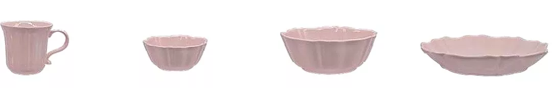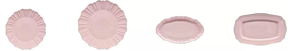 Ta komplet makaronske roza keramične posode vključuje devet kosov (skledo, krožnik, globok krožnik, čajnik in čajnik). Ta vsestranski izdelek je mogoče prilagoditi posamično ali kot celoten niz vseh devetih. Na voljo v velikostih, ki ustrezajo vsaki jedilnici, od posode za zajtrk do krožnikov za večerjo do popoldanskih skodelic za čaj, komplet poskrbi za široko paleto potreb.