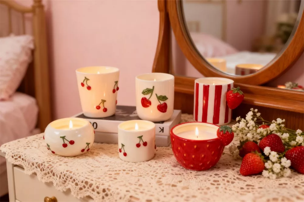 Serija Super Adorable Ceramic Candle Jar podjetja BYF vključuje vrhunske ročno izdelane keramične kozarce za sveče s "super srčkanim" slogom oblikovanja. Dizajni vključujejo klasične sladke elemente, kot so rdeče češnje, tridimenzionalne pentlje in jagode, z gladko glazuro in raznolikimi oblikami. Izdelana je iz varnih in okolju prijaznih materialov, ima odlično toplotno odpornost in se popolnoma prilega standardnim stenjem in različnim podstavkom iz voska, zaradi česar je hkrati visokokakovostna posodica za sveče in umetniški okrasni predmet, ki popestri vaš dom.